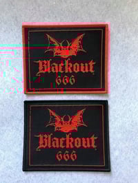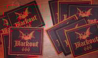 Official BLACKOUT patch. Woven. Size approx. 10 x 8 cm (3,9 x 3,2 inches). Two different border colors.